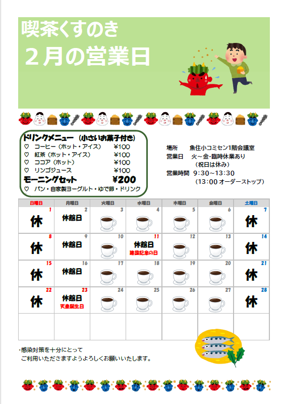 日に日に寒さが厳しくなってきましたね🥶 喫茶くすのきでは、温かい飲み物をご用意して皆さんのお越しをお待ちしております😉